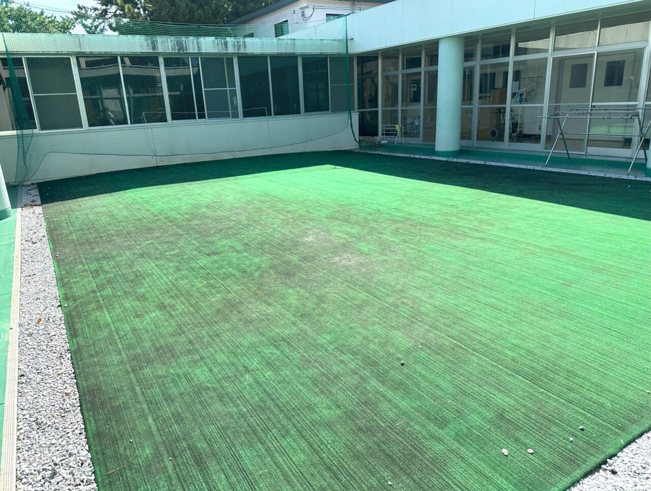 既存の人工芝処理後、不陸を調整して防草シートと人工芝を施工いたしました。入居者様が安心してお使いいただけるように、つなぎ目などにも注意し施工させていただきました。Aタイプ芝丈30mmの色味や質感にも大変お喜びいただけました。この度は、誠にありがとうございました。