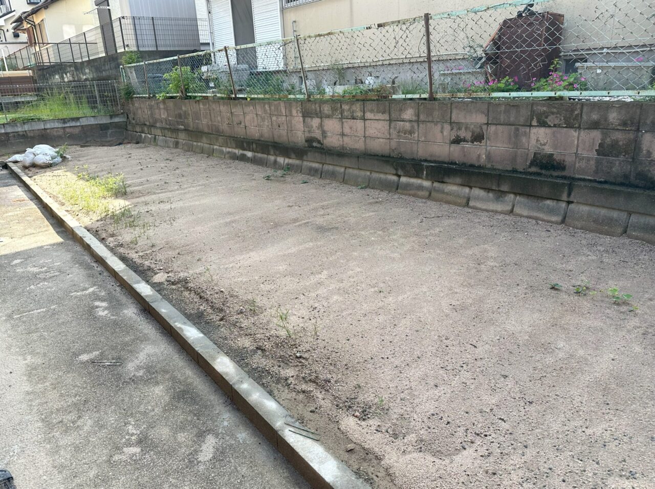 お庭全体の雑草処理後、不陸を調整し、防草シートと人工芝を施工致しました。見た目もスッキリとした緑鮮やかに変わったお庭に大変お喜びいただけました。やっと雑草処理から解放されます!と嬉しそうにおっしゃっていただきました。この度は、誠にありがとうございました。